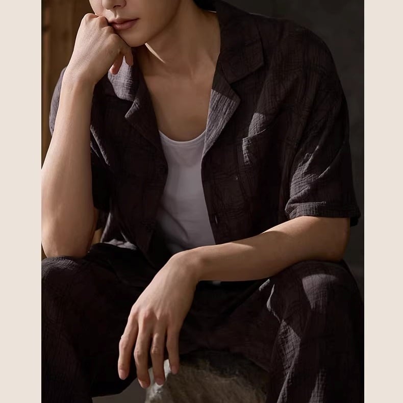 《やさしい風合いのダブルガーゼで包む、ナチュラルなペアパジャマ》