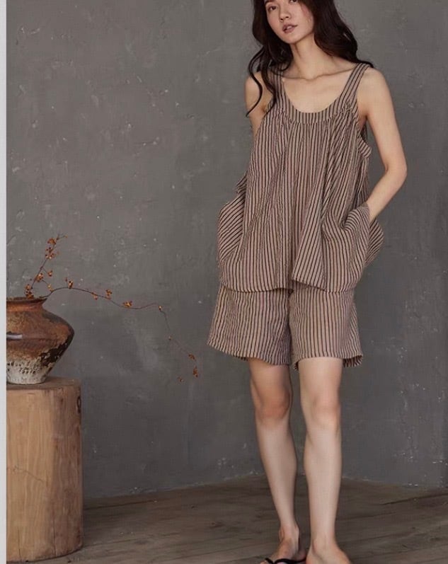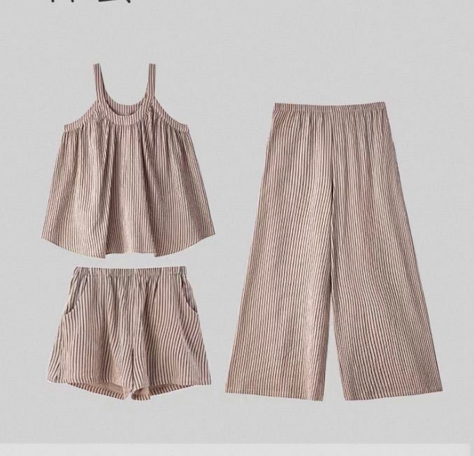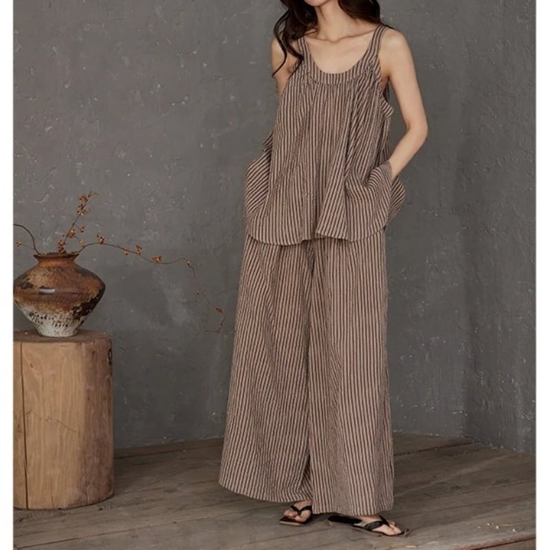 【3set】【M-XL】stripe pattern suspenders+widepants pajamas p1428