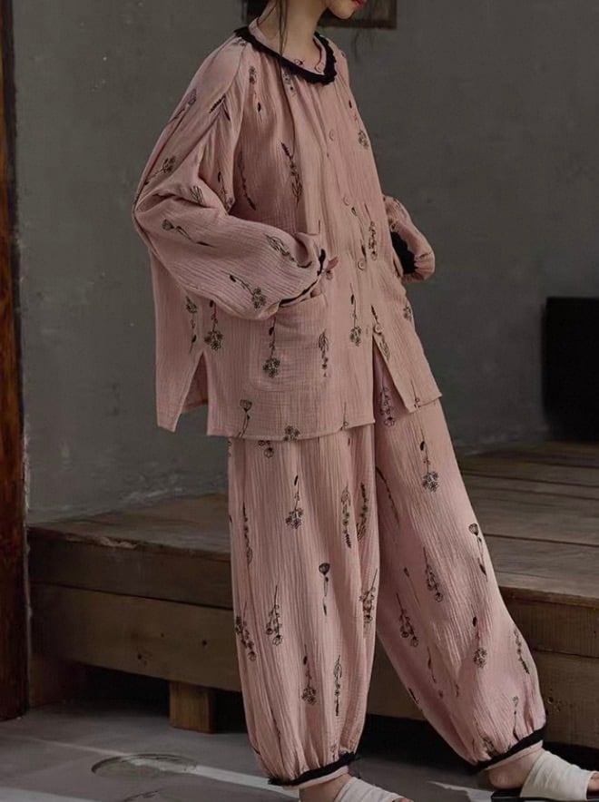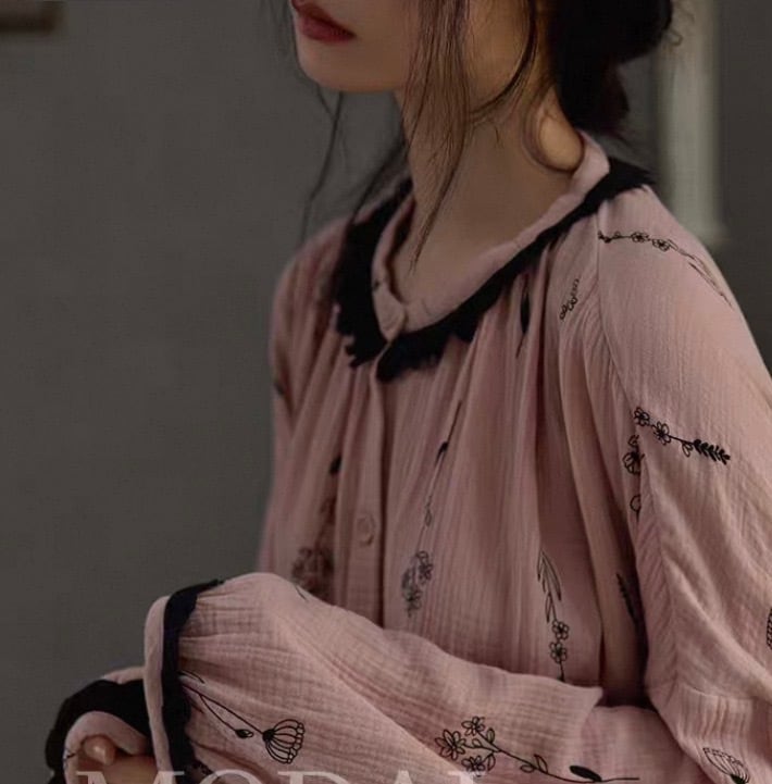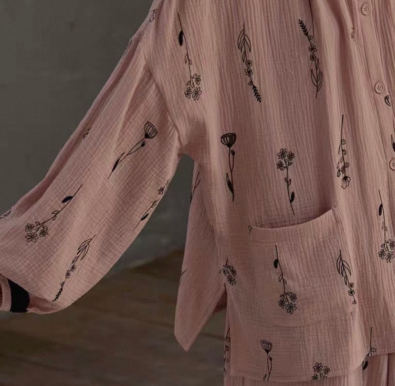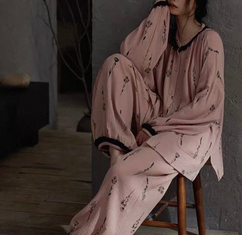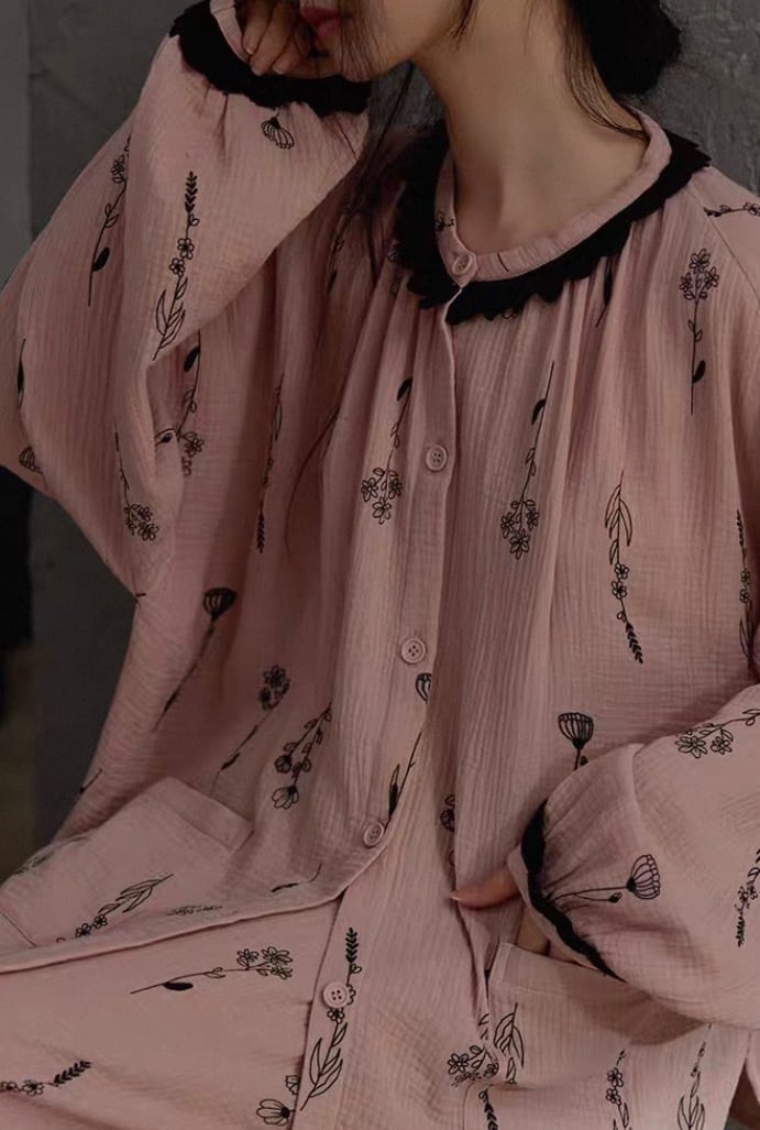 【M-2XL】cotton100 monotone flower pattern cardigan style pajamas p1523