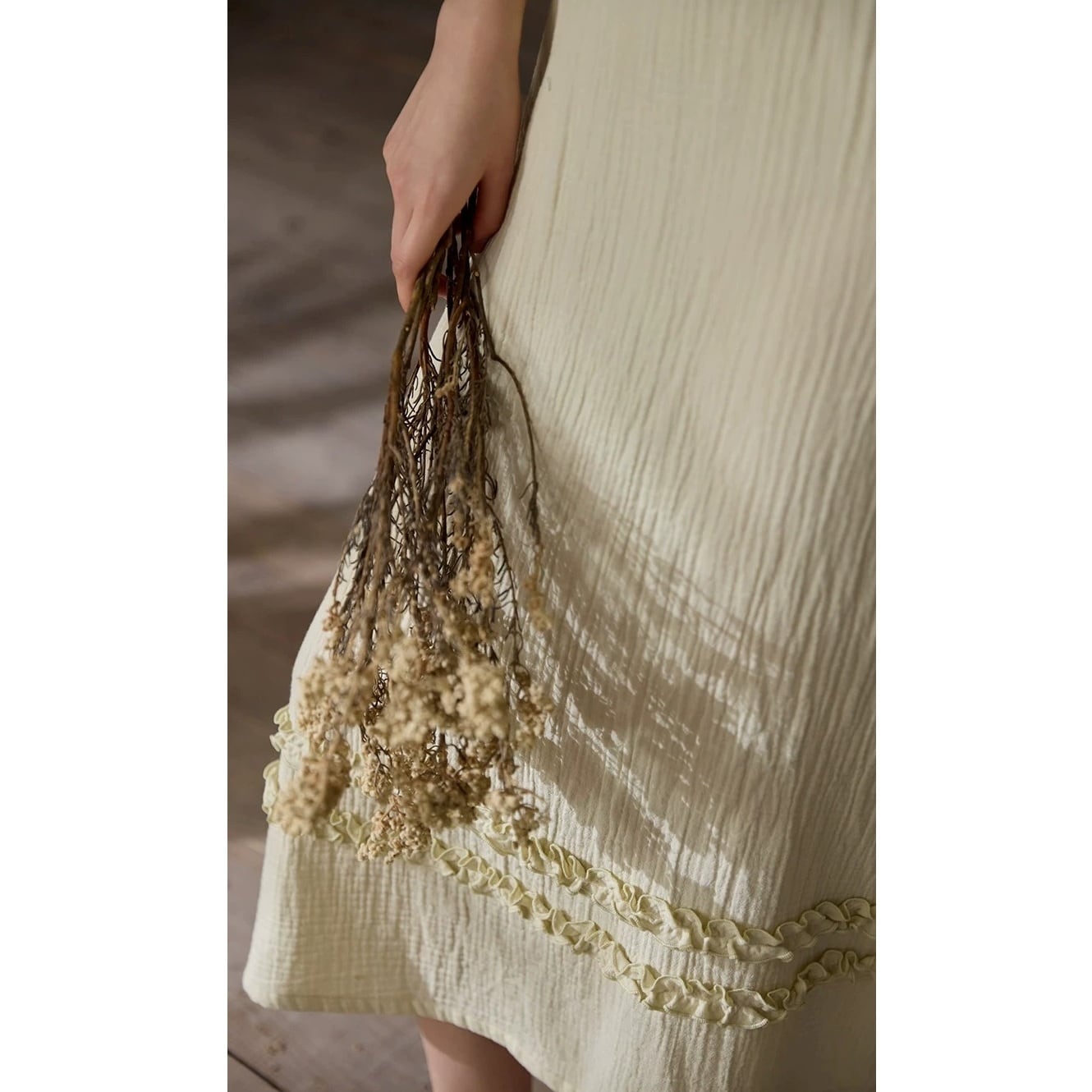 《バックスタイルで魅せる、軽やかで上品なフリルワンピース》