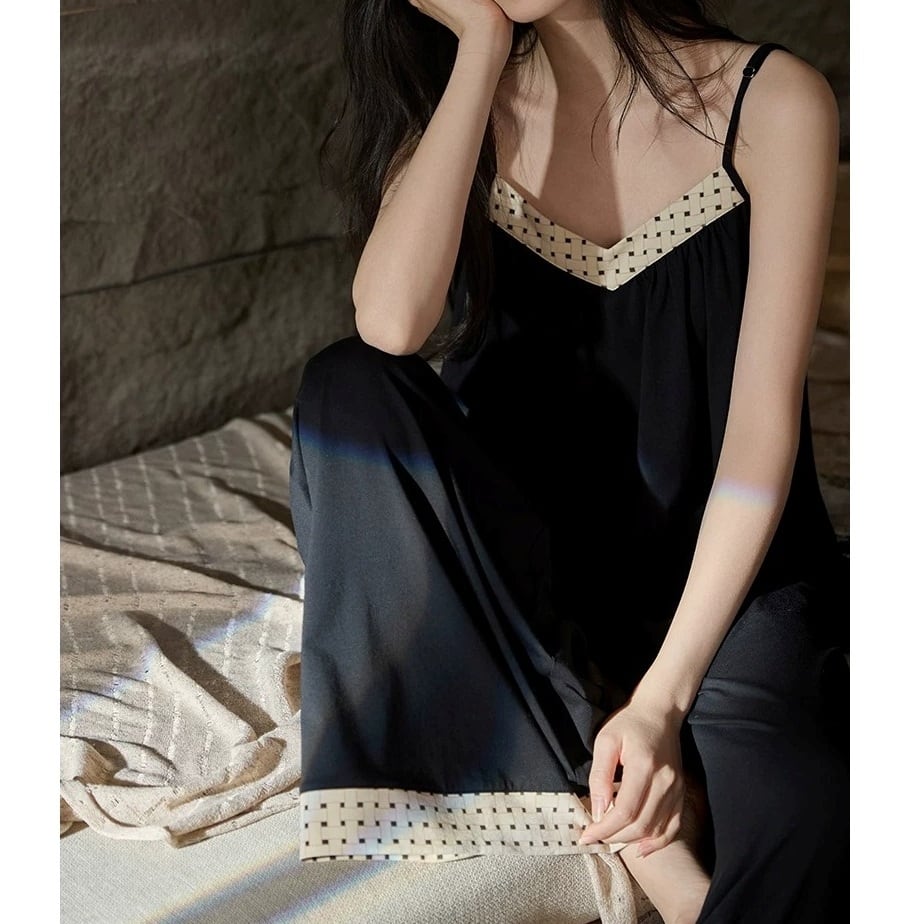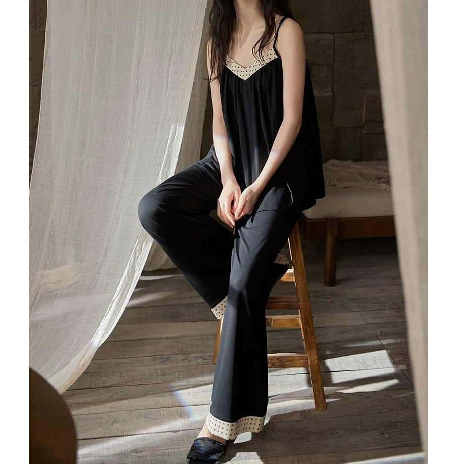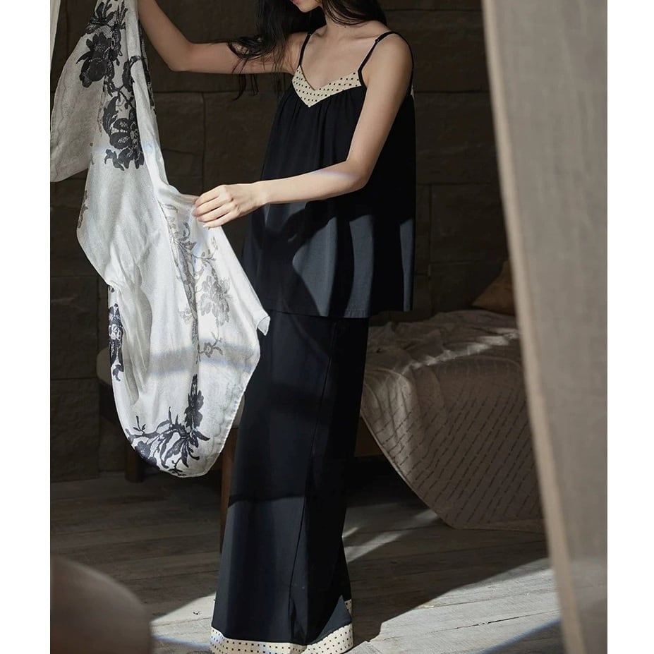 【M-XL】monotone dot camisole long pants pajamas p1659