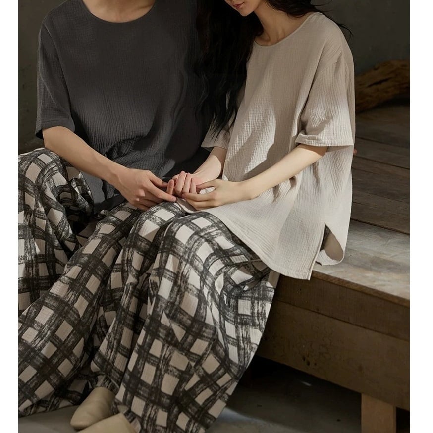 【M-XL】t-shirt check pattern longpants pajamas p1661
