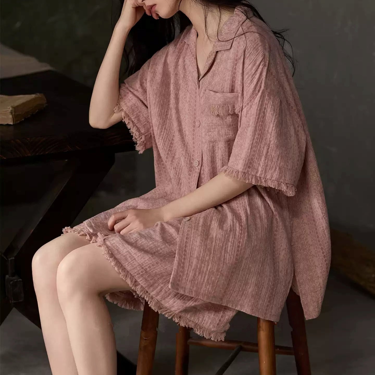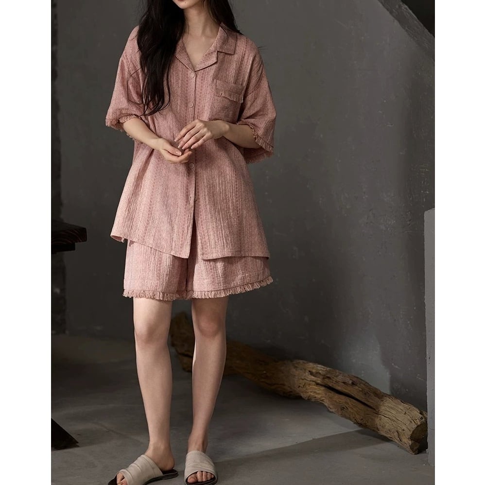 【2COLOR】【M-XL】lapel collar fringe pajamas p1662