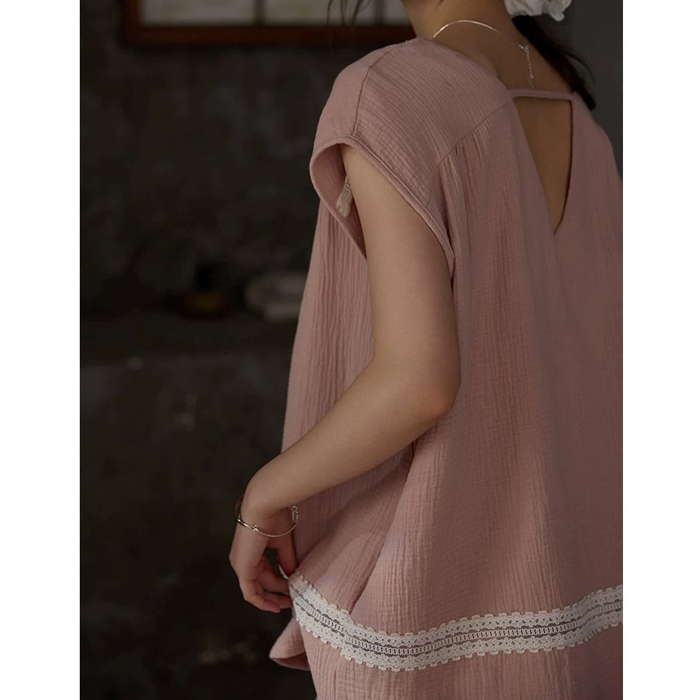 《やさしいピンクとレースが彩る、上品リラックスパジャマ》