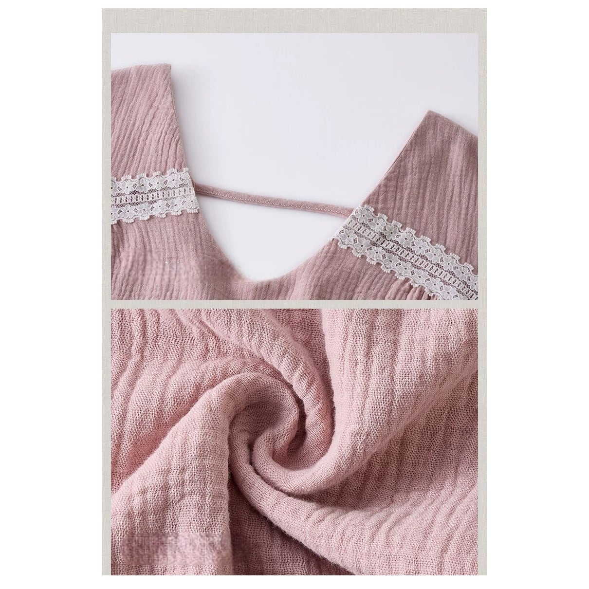 訳ありSALE【M-XL】french sleeve lace cotton pajamas p1666