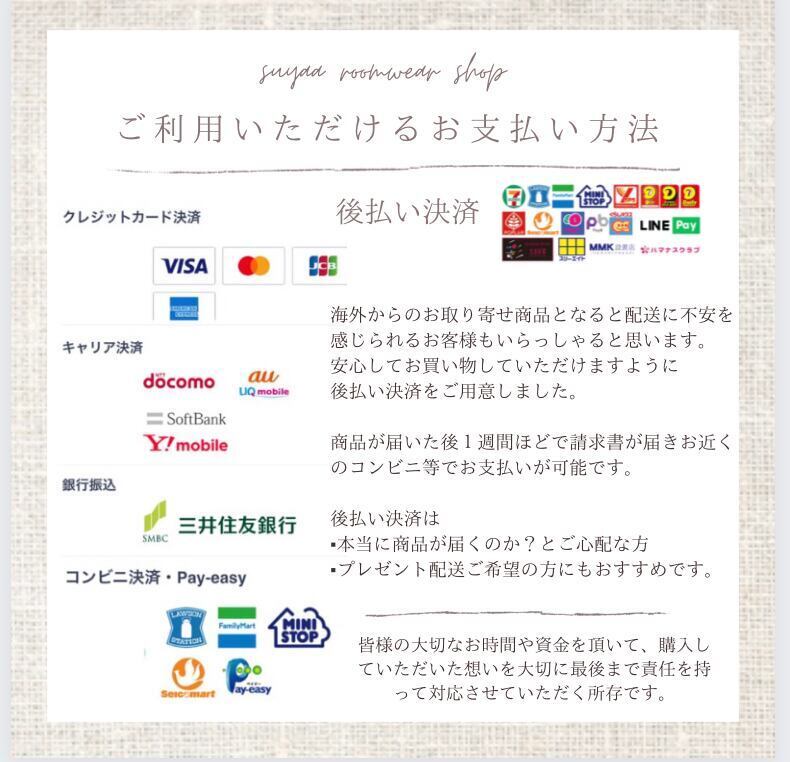 プリンセスのようなデザインの上品で可愛い kidsサイズのワンピースルームウェア。 首回りのレースのデザインなど細部まで 可愛く作られていますルームウェアです。 母子に安全なルームウェアを。という理念のルームウェアメーカーの取り扱い商品ですので、安心安全な 素材を使用しています、 kids ルームウェア ↓ https://www.suyaa.shop/categories/4581499 親子ペアルームウェア ↓ https://www.suyaa.shop/categories/3671409 【素材】 polyamide fiber (nylon) 90% other10% ■size:90~150 90 着丈:41cm / 肩幅:30.4cm / 袖丈:36cm / 胸囲:66cm 100 着丈:45cm / 肩幅:31.2cm / 袖丈:38cm / 胸囲:69cm 110 着丈:49cm / 肩幅:32cm / 袖丈:40cm / 胸囲:72cm 120 着丈:53cm / 肩幅:33cm / 袖丈:43cm / 胸囲:75cm 130 着丈:57cm / 肩幅:34cm / 袖丈:46cm / 胸囲:79cm 140 着丈:61cm / 肩幅:35cm / 袖丈:50cm / 胸囲:83cm 150 着丈:65cm / 肩幅:36cm / 袖丈:54cm / 胸囲:87cm 90 着丈:53cm / ウエスト:40cm / ヒップ:67cm 100 着丈:57.5cm / ウエスト:43cm / ヒップ:70cm 110 着丈:63cm / ウエスト:46cm / ヒップ:73cm 120 着丈:68cm / ウエスト:49cm / ヒップ:77cm 130 着丈:73cm / ウエスト:52cm / ヒップ:81cm 140 着丈:78cm / ウエスト:56cm / ヒップ:85cm 150 着丈:83cm / ウエスト:60cm / ヒップ:89cm ▪︎SUYAA人気ランキングbest10 https://www.suyaa.shop/blog/2021/11/14/025758 ▪SUYAA人気アイテムはこちら https://www.suyaa.shop/categories/3901376 ▪︎SUYAA shop トップページ https://www.suyaa.shop/ ▪︎ご購入前にこちらを必ずお読みください。 後払い決済についても記載しております。 https://www.suyaa.shop/blog/2021/07/11/002334 ーーーーーーーーーーーーーーーーーーーーーーーー おまとめ購入におすすめ!大好評! 【SILK inner wear】 ルームウェア、パジャマのインナーにおすすめなシルク素材のアイテムを多数取り扱っております ❁silk❁ シルクは保温性、吸湿性、放湿性に優れていて 静電気が起きにくいのでお肌にも体にも優しい素材です 日常に身につけるインナー類はシルク素材のものを使用し、静電気の影響を防ぐことで体にかかるストレスを減らすことにもなり、健康(冷えや血流)や美容や睡眠の質の改善、予防にも役立ちます! お肌に一番近いところに身に着けるインナー類、女性にとって大切な胸や陰部を守るために身につける下着はぜひシルクが含まれる素材のインナーをおすすめです。 SUYAAではお手頃価格でデザイン性も重視したシルクインナーを取り揃えております! ルームウェアやパジャマと共にぜひご利用ください。 シルク素材インナーはこちら (ブラジャー/ショーツ/キャミソール/高品質silkパジャマetc...) ↓ https://www.suyaa.shop/categories/3616774 ーーーーーーーーーーーーーーーー 【ご挨拶】 沢山のショップの中からSUYAAにお越しいただき ありがとうございます SUYAAは海外の珍しいデザインのルームウエアを取り扱う ルームウェア専門ショップです。1点1点海外から取り寄せをしております。 店主が重い睡眠障害/不眠症に悩んだ経験がありそこから眠りの大切さを知りその経験から皆様の眠りやおうち時間を心地よく過ごしていただけるお手伝いがしたい、との想いでSUYAAを立ち上げました。 海外からのお取り寄せ商品となると、本当に届くのか?商品は大丈夫なのか?など、不安に思われるお客様もいらっしゃると思います。 当店は信頼のあるルームウェア専門のお店から買い付けをしております。 海外からのお取り寄せのため、お届けまでにお時間をいただきますが皆様の大切なお時間や資金を頂いて、購入していただいた想いを大切に、最後まで責任を持って対応させていただく所存です。どうぞよろしくお願い致します。 今までご購入していただいた多数の商品の中で、届かなかった。という事は一度もございません。 有難いことにSUYAAのルームウエアを気に入っていただき再購入してくださる方も多くいらっしゃいます。 本当に届くのか?とご心配な方にも安心していただけるために【後払い決済】もご用意しております。 (後払い決済の詳細は下記のURLをご覧ください) ご購入、ご入金、発注とタイムラグがあるため、ご購入後に売り切れのご連絡をさせていただく可能性 もございますが、その際はその他の商品へのご変更、もしくは返金対応をさせていただきます。 ▪公式LINEアカウント https://line.me/R/ti/p/@199kjlcp 公式LINEアカウントお友達ご登録で【眠りと自律神経を整えるNOTE】をプレゼントしております。また500円OFFクーポンをプレゼントしております。 InstagramではSALE情報や新作情報なども随時掲載しております。 ▪︎公式Instagram @suyaa_sleep https://www.instagram.com/suyaa_sleep