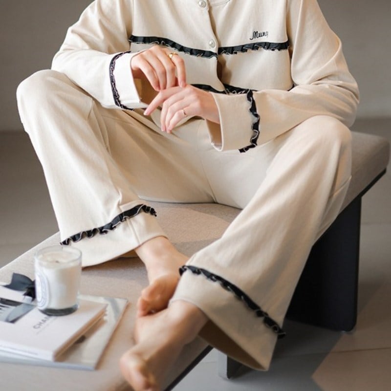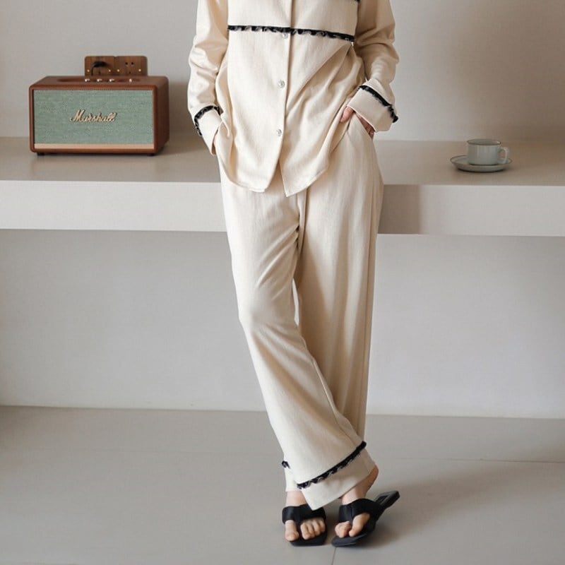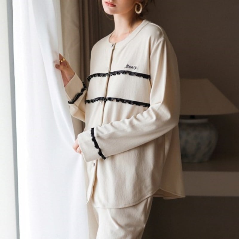 【2color / M-XL】frill-line design cardigan style pajamas p819