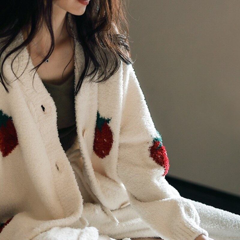 あったかフリースが嬉しいイチゴ柄パジャマset。