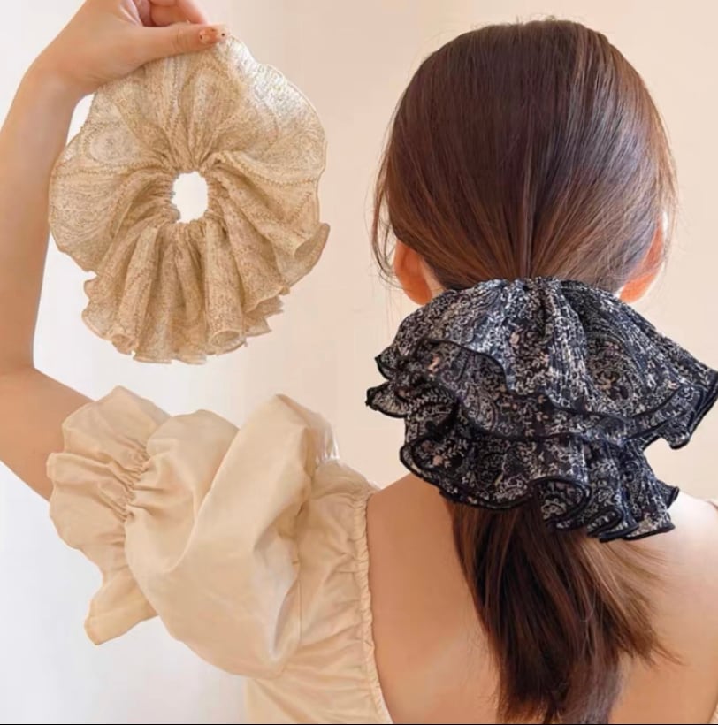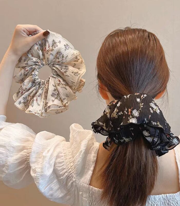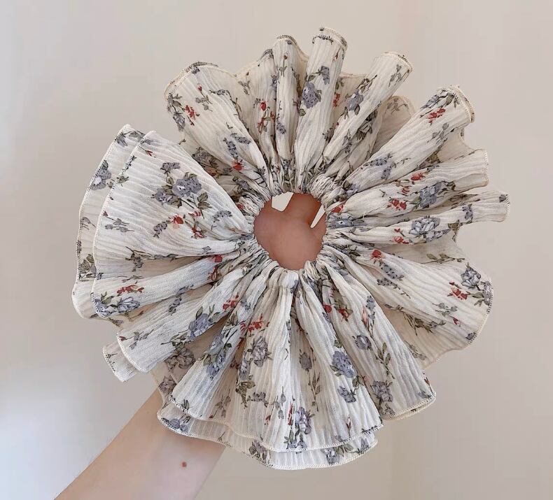 大きめの花柄の可愛い存在感のあるシュシュです。