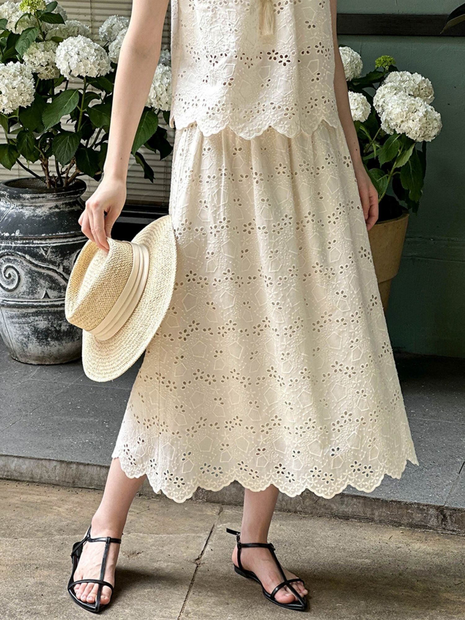 穴あき生地が涼しげなトップス+スカートSET。