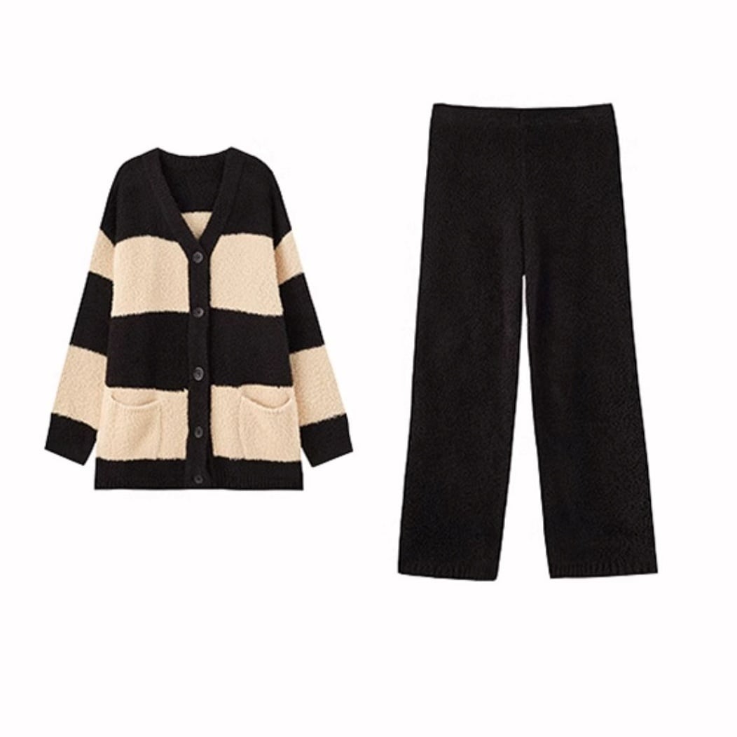 【M-XL】fleece flannel stripe pattern cardigan style pajamas p1279